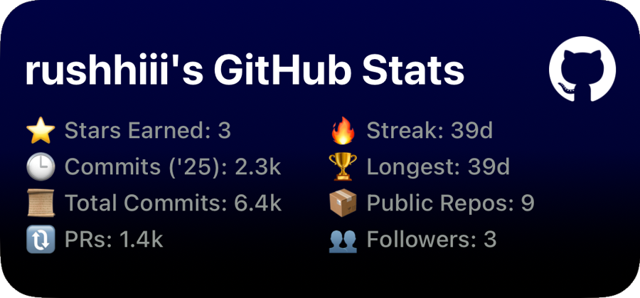 Track your GitHub stats — commits, contributions, streaks, PRs, issues, and repo insights — all beautifully displayed on your iOS home screen using Scriptable.