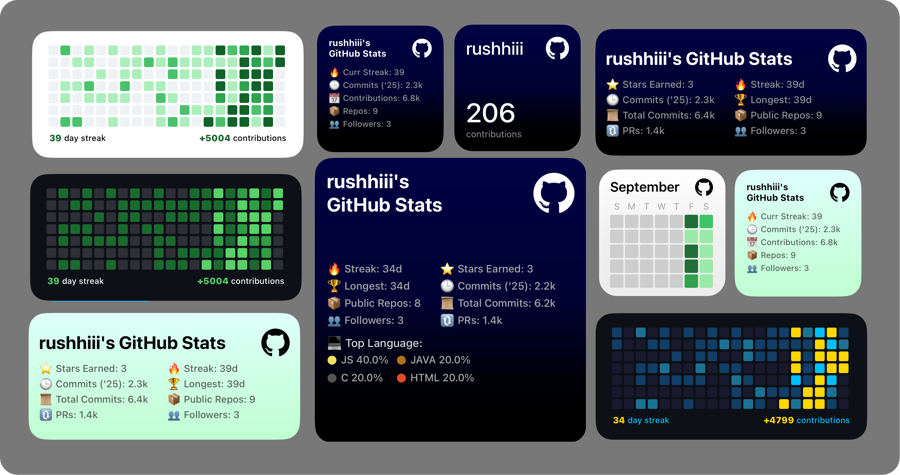 📌 Dynamic layouts for small, medium, and large widgets with theme support and GitHub API integration.