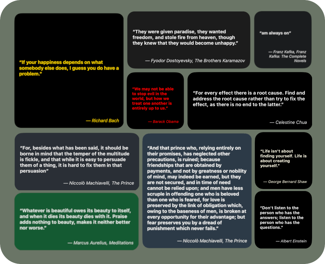 gita,zen,kafka, etc.🎯 Supports fixed index selection for showing specific quotes