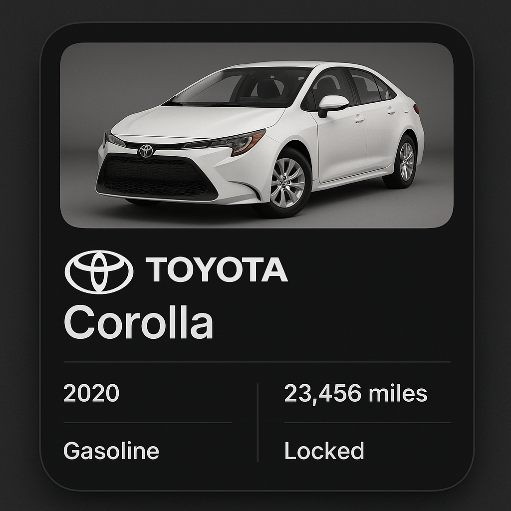 This widget is an unofficial third-party application. It is not affiliated with, endorsed by, or sponsored by Toyota Motor Corporation. Toyota, the Toyota logo, and related marks are trademarks of Toyota Motor Corporation.
